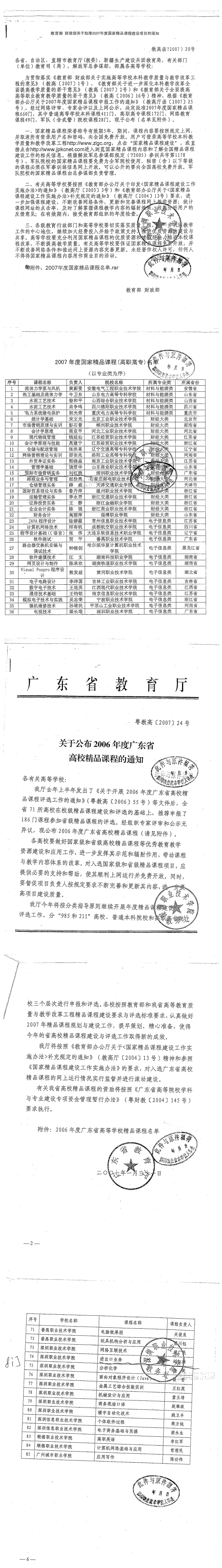 2、国家级、省级精品课程