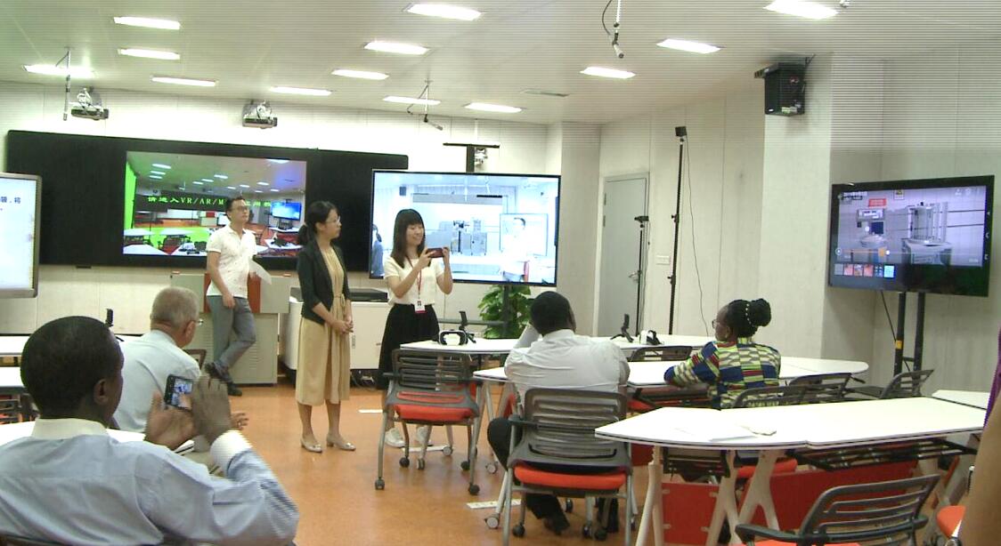 2019年9月2日,教科文职业教育创新中心项目评估国际研讨会的专家领导来我校调研,并来到5G+XR智慧教室参观、聆听了5G+XR智慧教学方案的讲解和功能演示。